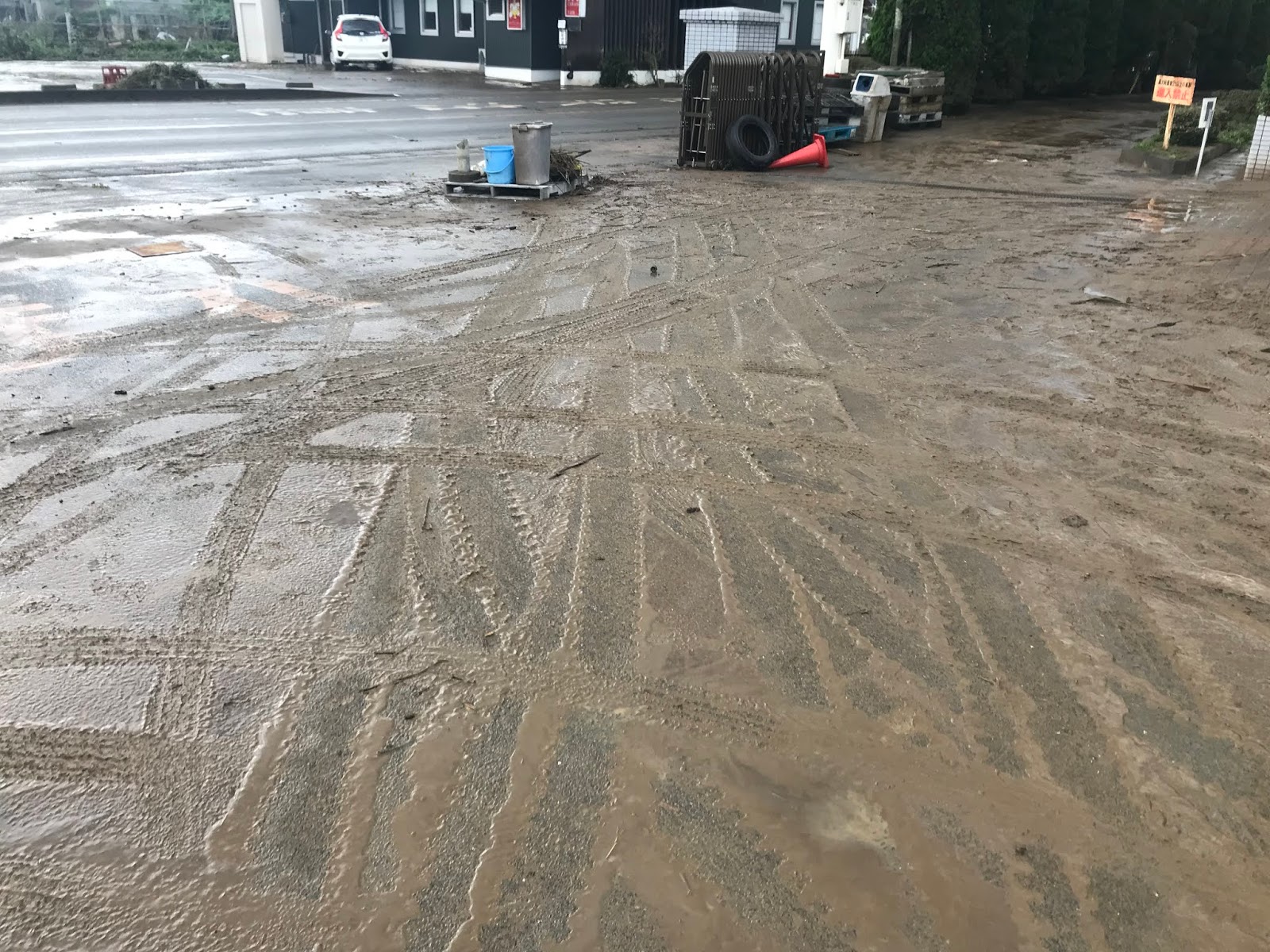 ご覧の様に、所々では通り雨の影響で水たまりが出来てましたが